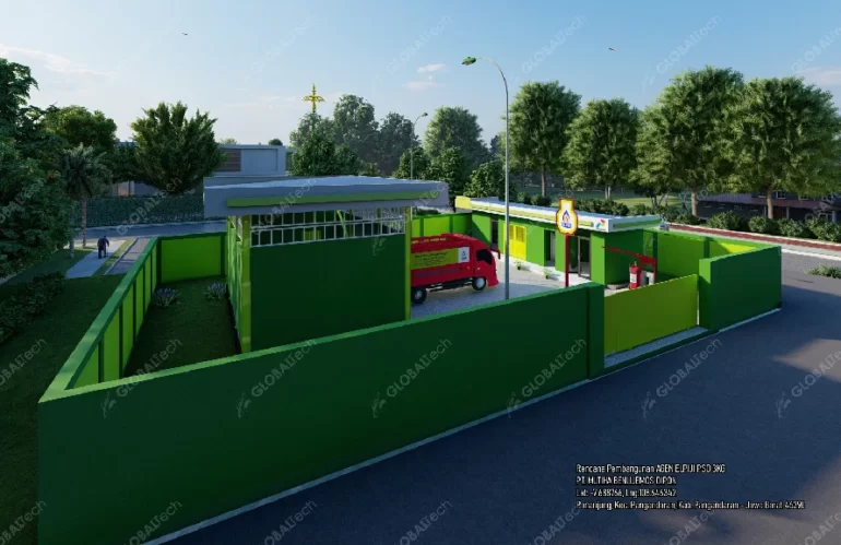- Lantai gudang setinggi bak Truck (panggung) yang dapat diakses langsung untuk loading / unloading tabung dari dan ke dalam armada angkut.